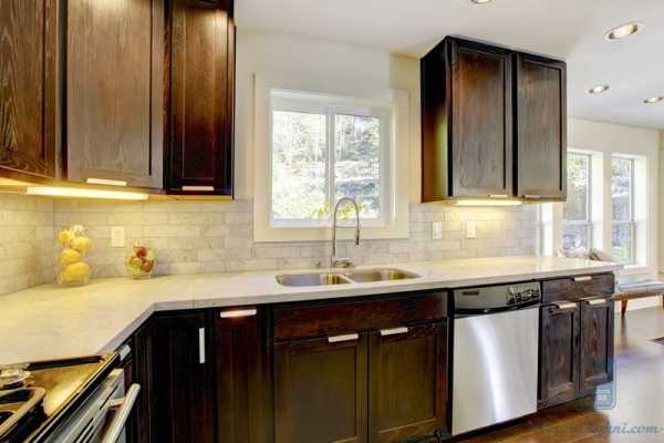 - Учитывайте цветовую схему кухни. Светлые стены и фасады будут отражать до 80% потока света, темные – только 12%.