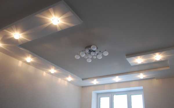 - Равномерно распределённые по всему потолку осветители с учетом габаритов комнаты.