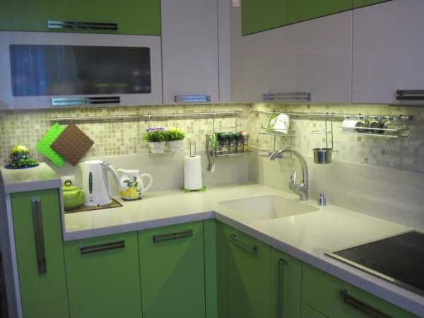 Подсветка рабочей зоны определяет удобство работы на кухне. Подсветка организуется в зависимости от места расположения рабочей зоны.