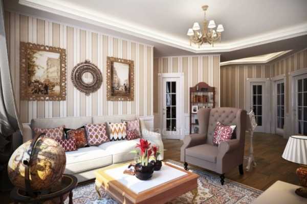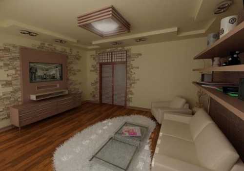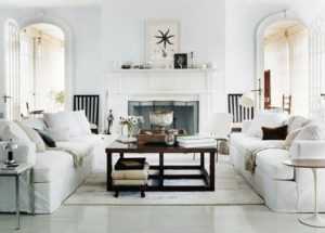 Простое и комфортное решение внутренней отделки дома своими руками. Интерьер радует спокойствием пастельных красок и добротностью деревянной мебели. Последняя должна быть либо раритетной, либо патинированной. В гостиную надо поставить диван с рюшевой оторочкой и деревянными, округлой формы, подлокотниками. В комплект к нему могут быть добавлены аналогичного вида кресла.