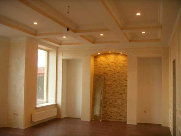 Вместе с этим выполняется отделка откосов внутренних дверей и окон.Что касается потолков, то их можно отделать вышеописанными способами, либо использовать натяжные или подвесные потолки.