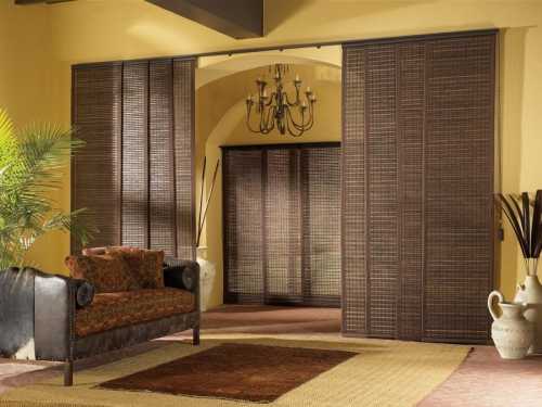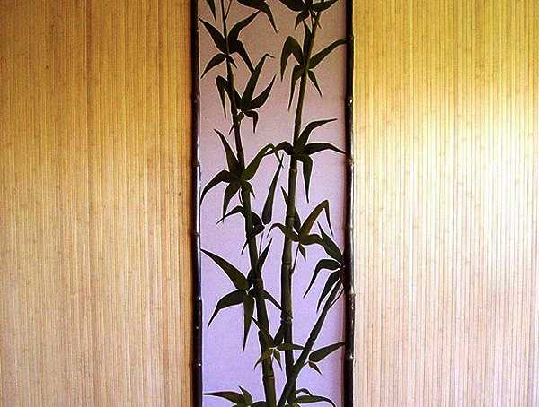 Каркас перегородки с обеих сторон можно обшить бамбуковыми панелями. Строительные супермаркеты предлагают перегородки уже в готовом виде. Для выделения или разделения отдельных зон жилых помещений можно использовать витражные бамбуковые перегородки.