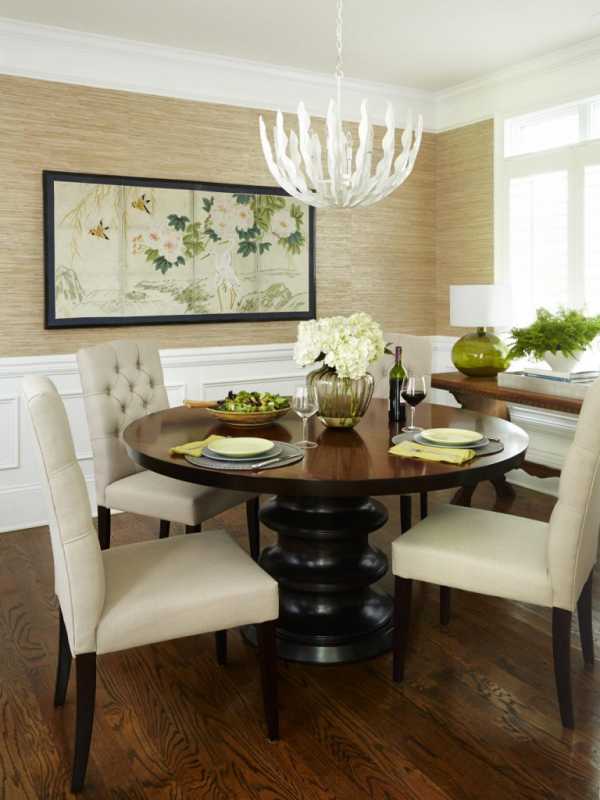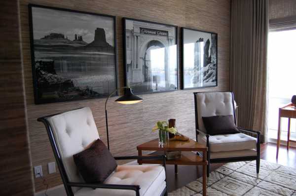 Достаточно хорошо смотрятся обои в сочетании с мебелью. Присутствие натуральных оттенков обязательно. Обивка у мебели непременно должна быть из кожи либо льна. Мебельный гарнитур должен быть из натурального дерева. Если всего этого придерживаться, тогда у вас получится гармоничный ансамбль.