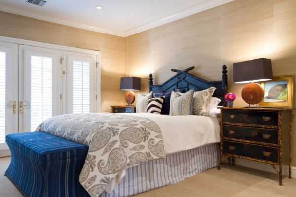 Также бамбуковые обои прекрасно подойдут и для отделки спальни. И это не удивительно. Ведь они благотворно влияют на общее самочувствие человека, внося в его жизнь гармонию и уют. Хорошо сочетаться будет в таком интерьере кровать светлых оттенков и комод из темного дерева.