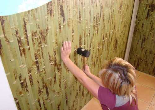 Удобнее всего монтировать покрытие на жидкие гвоздиОни приятны на ощупь, безвредны для окружающих, поэтому пригодны для отделки жилых помещений. С помощью изделий из бамбука любой собственник помещения может декорировать его в японском или китайском стилях.