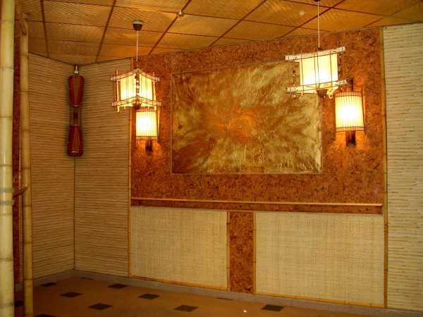 Работа с бамбуковыми обоями не требует особых знаний и навыков. Обоями отделываются непосредственно стены и потолок. На них не нужно предварительно крепить каркас.
