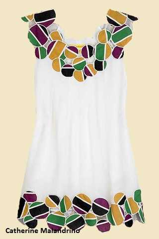 Абстрактные рисунки, такие как точки или полоски, требуют дополнительного времени , чтобы сделать нужный трафарет. Прежде чем шить, поэксперементируйте с расположением и сочетанием таких тканей, ведь от него будет зависеть конечный результат. Хотя по правилам ткань в полоску необходимо кроить вдоль долевой нити, попробуйте вырезать ее по косой, чтобы линии шли по диагонали . Впоследствии можно будет так распоожить детали, что полоски словно лучи пойдут от центра к краям изделия.