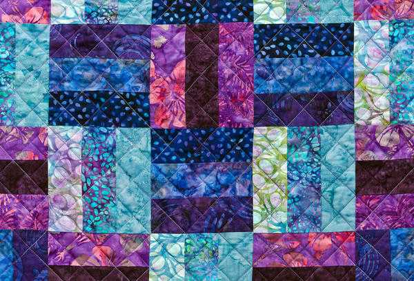 - «Акварель»: в этой схеме пэчворка выкройки или шаблона особенного нет, главная идея – в цвете: создаются полосы или квадраты из более мелких деталей такой же формы и далее группируются по цветовой гамме, выстраивая определенный рисунок