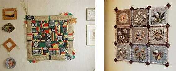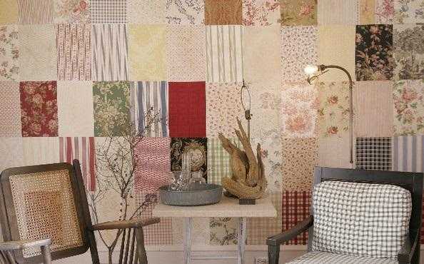 В стиле пэчворк можно оформить не только конкретные вещи, но и целую стену. Делается это при помощи готовых обоев, пэчворк-панно или кусочков обоев, склеенных друг с другом. Фабричных обоев с лоскутным орнаментом огромное количество, достаточно лишь внимательно выбрать цвет и фактуру. А вот пэчворк-панно и стена, выполненная из кусочков старых обоев своими руками, требуют определенных умений и стараний.