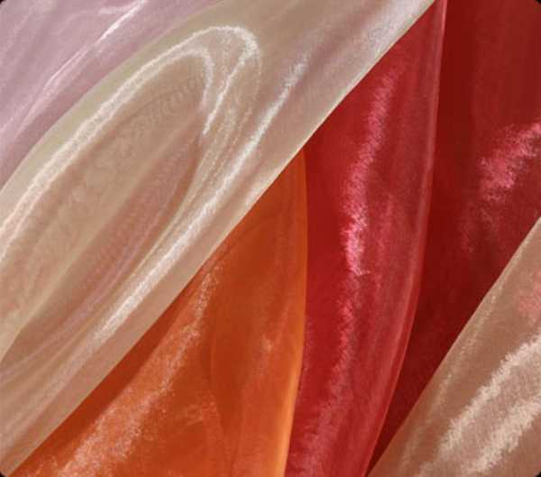 Органза. Прозрачная жесткая ткань, полученная из шелка или синтетическх материалов либо соединяющая их в своем составе. Существуют однотонные ткани, ткани с переходами от цвета к цвету и с эффектом «металлик». Органзу используют в аппликации и для создания различных художественных эффектов.