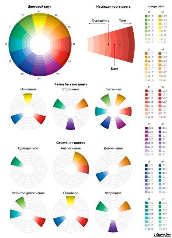 Для того, чтобы хорошо ориентироваться в цветовых сочетаниях, можно воспользоваться полным цветовым кругом, а котором основные цвета, разбиты на оттенки.