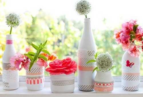 Ваза – самое популярное применение бутылок в интерьере, так как даже человек далекий от творчества, и, к тому же, в любом доме найдется применение этому предмету. Самый легкий способ сделать из обычной стеклянной бутылки вазу – окрасить ее акриловой краской. Окрашенную бутылку можно оставить без изменений, а можно дальше продолжать ее декорировать, используя разные техники.