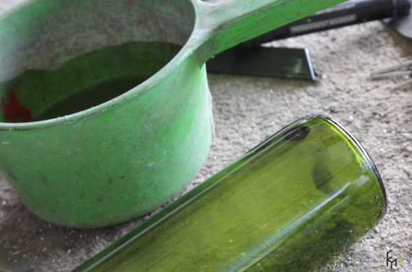 После того как бутылка высохла, делается срез на нужном уровне при помощи стеклореза. Чтобы получить в результате идеально ровную линию среза, данную процедуру рекомендуется производить не спеша, планомерно.