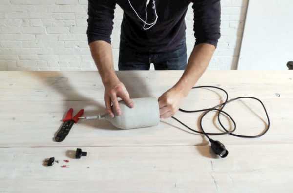 Используя отвертку, разбираем настольную лампу, аккуратно, чтобы не повредить элементы конструкции, вытягиваем шнур.