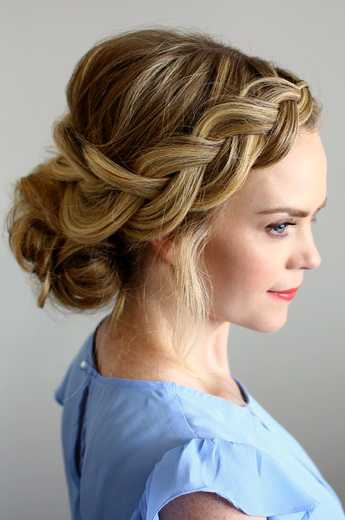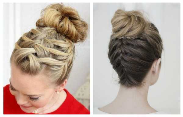 Плетение для торжественных случаевНапример, сделав экстравагантный пучок с интересным плетением, Вы будете выглядеть неотразимо и уж точно не останетесь незамеченными.
