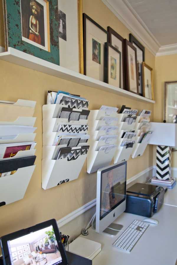 Как хранить бумаги и мелочи над рабочим столом: 11 идей