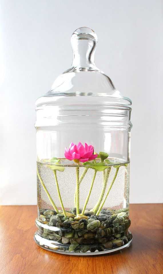- На стол можно поставить небольшую стеклянную вазу, наполненную сухими лепестками, которые издают слабый аромат. Вместо лепестков самые смелые могут завести аквариумную рыбку, например, «петушка», которому не требуется воздушная помпа и особый уход.