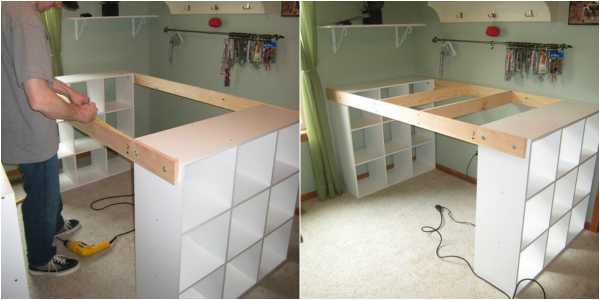 Заказывать специальную мебель для организации уголка рукодельницы получится слишком дорого, а вот любящему мужу это сделать своими руками вполне под силу!