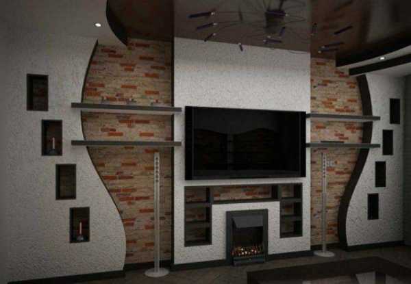 Данный материал имеет массу преимуществ: он легок и прост в монтаже, не требует больших усилий для выравнивания, из него можно собрать конструкцию практически любой формы. Но в тоже время он наделен одним существенным недостатком – хрупкость. Полностью обойтись без навесных полок, зеркал, картин и прочего невозможно. Но если эти — более легкие предметы — подвесить не так и трудно, то монтаж на него тяжелых изделий требует большой осторожности. И еще большую осторожность необходимо проявить при монтаже такой же хрупкой «плазмы» или LCD.