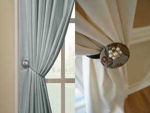 Магнитные подхваты для штор можно назвать универсальным декоративным элементом, поскольку использовать их можно не только как способ декора, а еще и как элемент, которым можно заменить крючки и кольца на карнизе. Этот магнитный декор представляет собой ленточку (или, например, трос, шнур, тоненькую проволочку), по обе стороны которой закреплены магниты, оформленные различными способами.