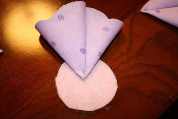 - Приклеила получившиеся круги к атласной ткани. Вырезала отступая от пластика примерно на 1 см. Сделала насечки и приклеила атлас завернув его, как на фото №3.