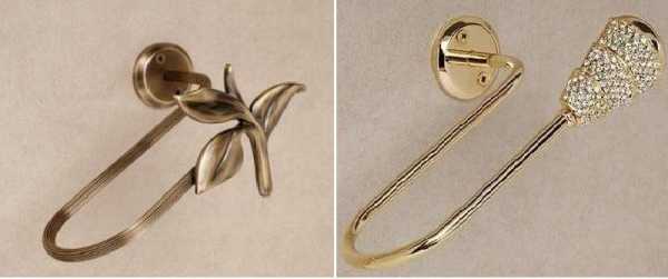 Оригинальные держатели для штор и в виде дверных ручек ― закрепленные на стене конструкции, за которые заправляется ткань. Они могут быть простой формы, в виде толстого, загнутого наподобие длинного крючка стального прута, а могут представлять собой изысканные произведения дизайнерского искусства.