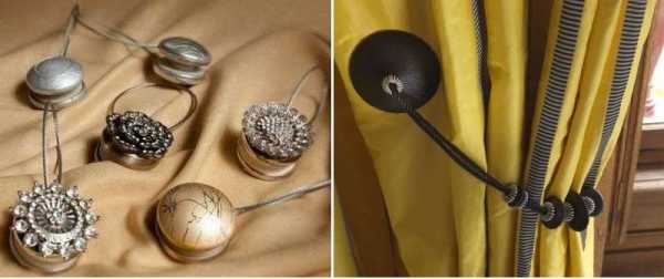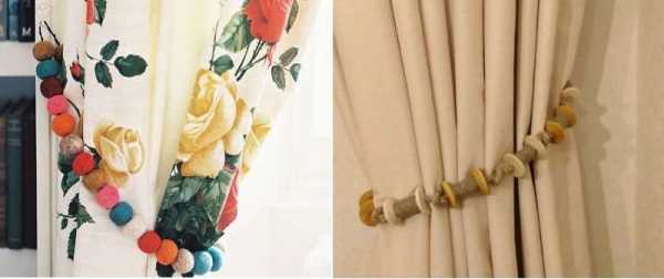 Использование подручных материалов дают возможность воплотить в жизнь, казалось бы, сумасшедшие дизайнерские идеи, реализовать нерастраченный творческий потенциал. Небольшая деталь в виде необычного или просто красивого держателя или яркого магнитного подхвата для штор часто становится акцентной и делает интерьер особенным и нескучным.