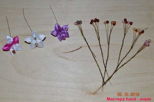 Для маленьких цветочков я использовала по одной тычинке. А для больших скрутила вместе по пять тычинок.