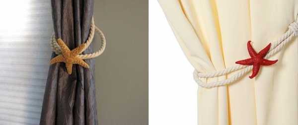 Кроме оригинальности такие аксессуары примечательны и тем, что способны стать натуральным ароматизатором для комнаты. Для штор в детских комнатах подхватами могут служить мягкие игрушки, в лапки которых вшиты магниты. Для комнат в этническом или восточном стиле идеально подойдут подхваты на магнитах с деревянными элементами, которые расписаны самыми разными символами, например, иероглифами. Прежде, чем нанести на деревянный элемент вашего подхвата какой-либо символ, не поленитесь узнать его значение, чтобы наполнить комнату нужным смыслом не только визуально, но и на энергетическом уровне.