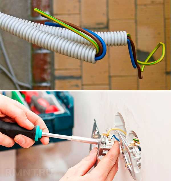 Перед тем, как зашить каркас, проложите кабели питания розеточных групп и освещения, телевизионные провода и витую пару внутри полости каркаса. Если используемые проводники не самонесущие и не бронированные, их нужно облачить в гофрированную оболочку. Шлейф проводов не должен крепиться к каркасу — только к стене, при этом в точке выхода провод сворачивается в петлю и укладывается таким образом, чтобы его легко можно было достать через отверстие под установочную коробку розетки.