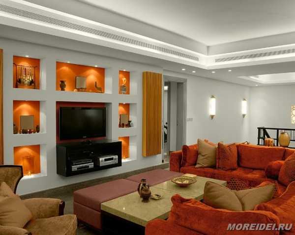 При помощи ниши из ГКЛ под телевизор можно сделать помещение более функциональным и стильным, да и «спрятавшийся» в нишу телевизор не будет портить интерьер, и бросаться в глаза.