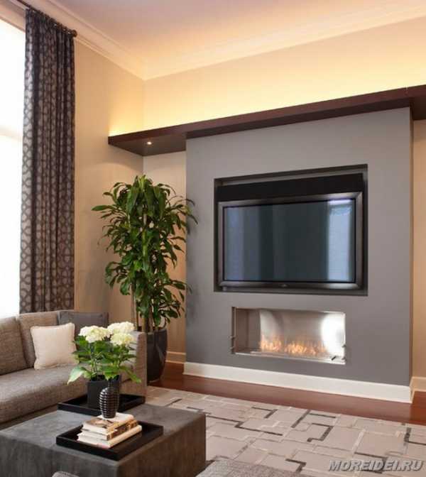 Так как плазменные телевизоры вешают чаще всего на стену, и какими бы тонкими они не были, на несколько сантиметров техника все равно будет выдаваться наружу. Ниша позволяет не только удобно разместить телевизор, но и визуально расширить помещение.