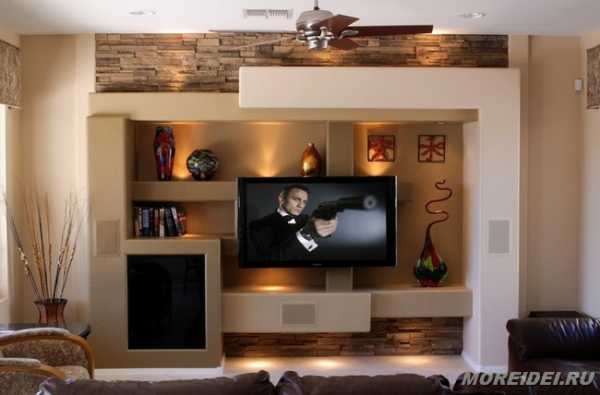 - Если телевизор расположен в нише, его будет сложно зацепить, или толкнуть. Также в ней могут стоять колонки, которые будут обезопасены от падения