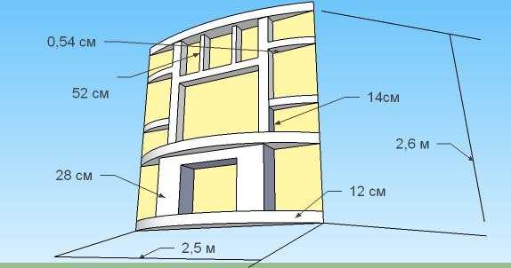 Пространство между колоннами образует нишу, которая может быть разделена полкой под установку, либо иметь усиленную заднюю плоскость. В первом случае каркас собирается таким же образом, как и для колонн: две линии профиля, соединённые перемычками. Если полка немного утоплена, потребуется пара вертикальных стоек для более жёсткой опоры. Также необходимо обязательно ужесточать конструкцию раскосами, поэтому нагруженные полки обычно обшиваются до самого пола, скрывая подробности устройства каркаса.