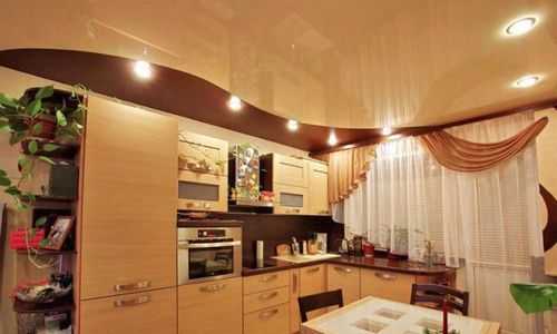 Наиболее эффектно в маленькой кухне выглядит глянцевый потолок