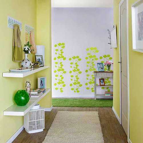 - создание акцента. Ярко выкрашенная стена должна привлекать внимание – если не с помощью небольшого столика для мелочей или ключницы, то благодаря картине или плакату внушительного размера;