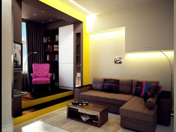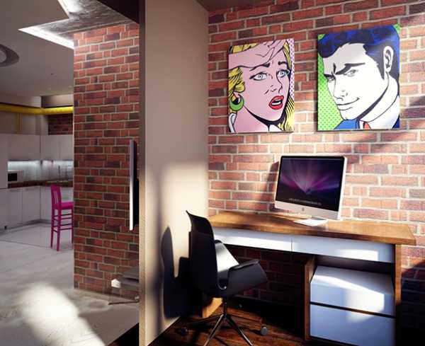 Чтобы свет проникал во все помещения, была установлена стеклянная перегородка (что органично поддержало стилевую направленность интерьера), а кирпичная кладка и внедрение ярких цветов (малинового и желтого) обозначило лофтовое направление дизайна.