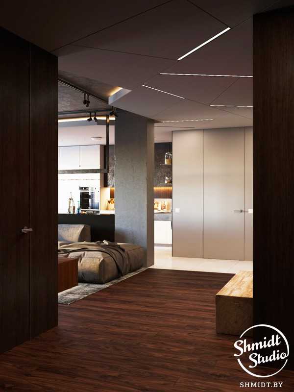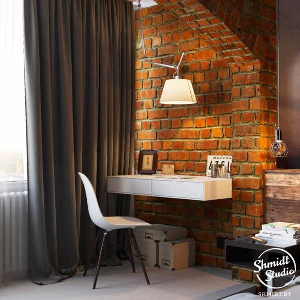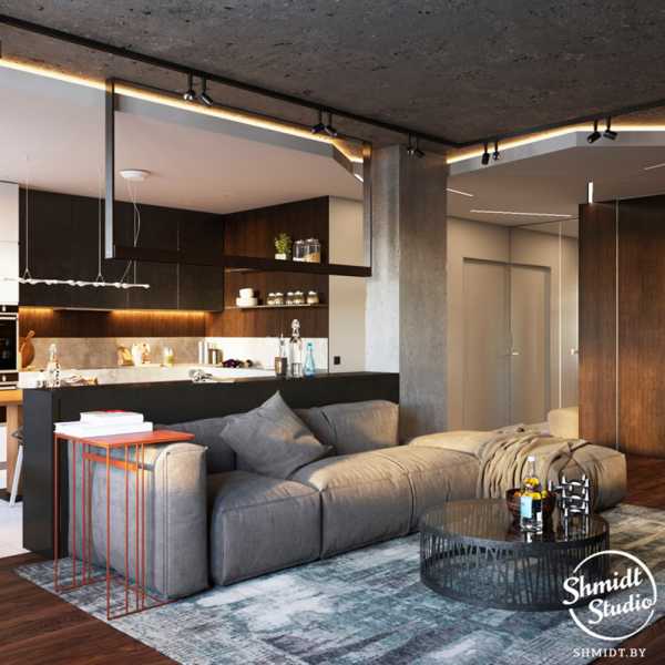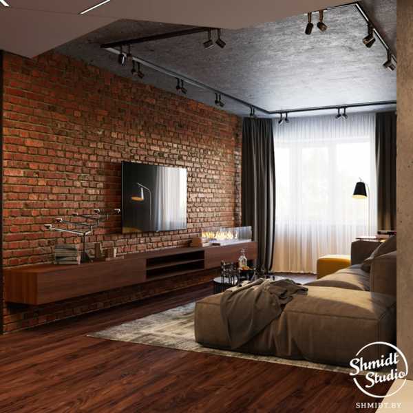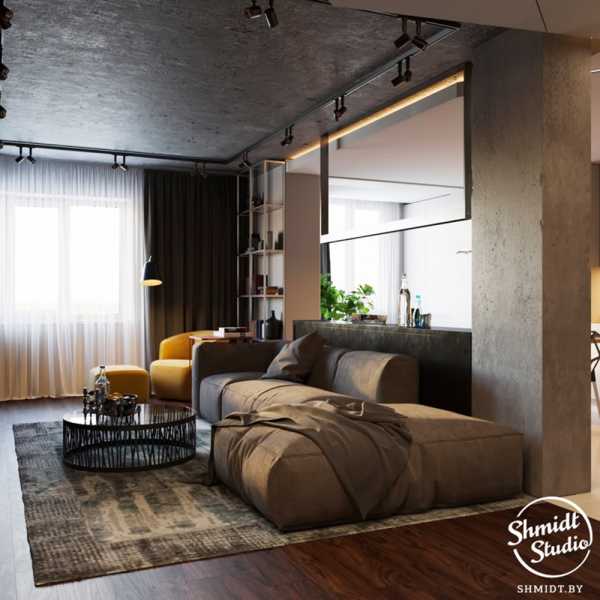 Оригинальный проект дизайна квартиры, в актуальном и современном стиле лофт, разработала белорусская студия интерьеров «Студия Шмидта».