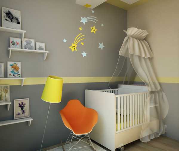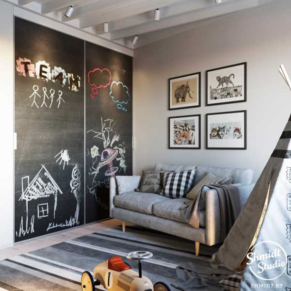 Детская выкрашена в светлые серо-жемчужные тона — такое оформление не только вносит в интерьер спокойствие и уют, но и становится прекрасным фоном для добавления в интерьер ярких акцентов.