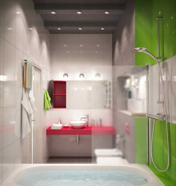 Вкрапление ярких деталей разбавляет и оживляет белый интерьер ванной комнаты.