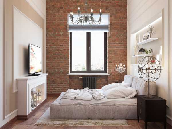 В гостиной комнате старый пережжённый кирпич и «голые» бетонные стены со читаются с ультра современной мебелью. Кухня чистая и уютная темно коричневый фасад кухни поддерживает общую концепцию интерьера. В гостиной зоне на кирпичной стене, покрытой лаком, разместился телевизор с оригинальной полкой и биокамином. В спальной комнате так же прослеживается стиль лофт. Здесь кирпичная арка разделяет спальную зону будуара.