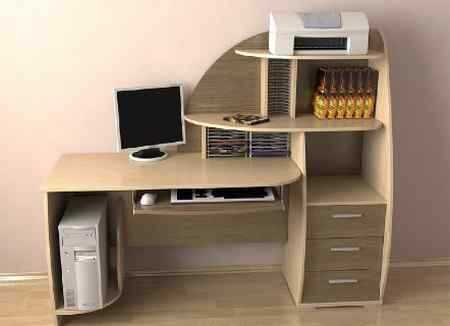 Компьютерный стол может быть: прямой, угловой, комбинированный, трансформер. Прямые конструкции являются самыми распространенными. Они могут быть установлены практически в любой комнате. Сделать угловой компьютерный стол своими руками – значит, максимально эффективно использовать угол помещения, создав при этом удобное место для пользования оргтехникой. Стол-трансформер занимает особое место. Его можно идеально вписать в любой интерьер. Изделие может представлять собой шкаф, комод, пенал, в котором скрывается компьютер. Существует даже стол-трансформер с небольшими шкафчиками, превращающийся при необходимости в спальное место.
