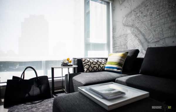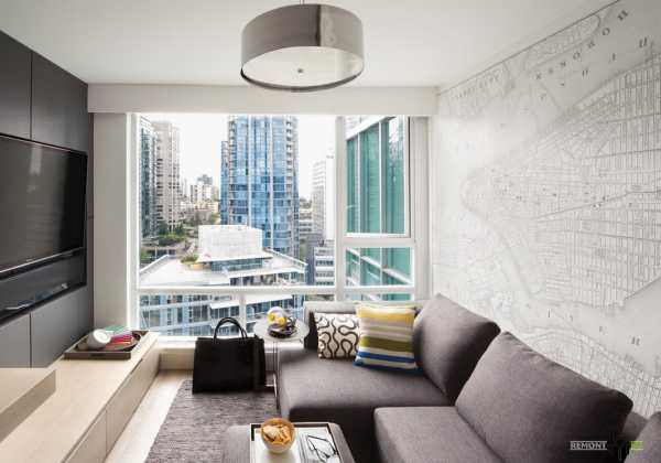 Очень важно наличие большого количества естественного освещения, поэтому большое окно – на всю стену – как раз в духе современного модерна. Это также подчеркивает ощущение простора в помещении.