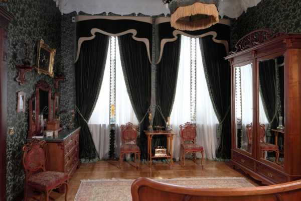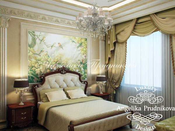 Интерьер спальни может подчеркнуть шёлковое покрывало или ламбрекен.