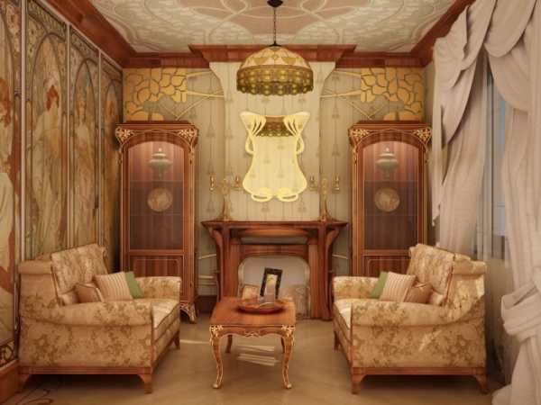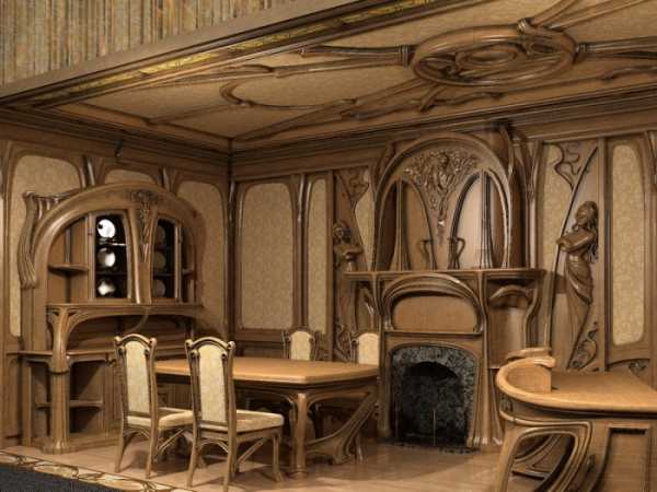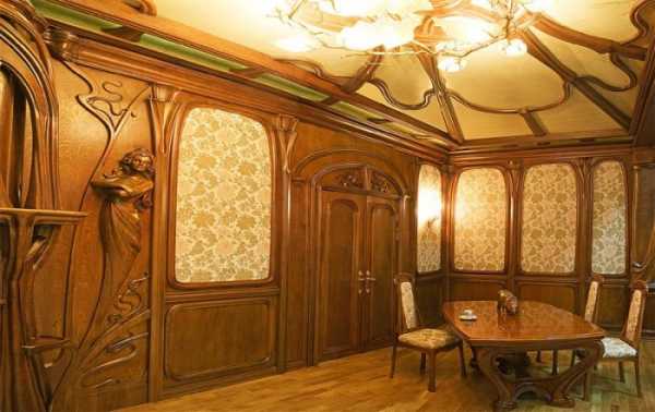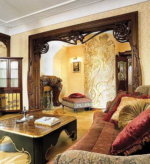 Внимание! Характерными чертами для стиля модерн в интерьере является использование существенного количества деревянных и растительных орнаментов.