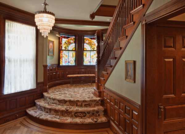 - Окна большие, с наличием витражей.