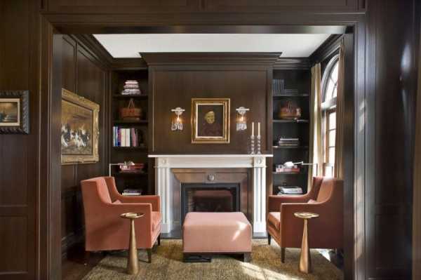 В гостиной загородного дома можно установить камин с дымоходом, а вот в рамках городской квартиры придется ограничиться его электрической версией.