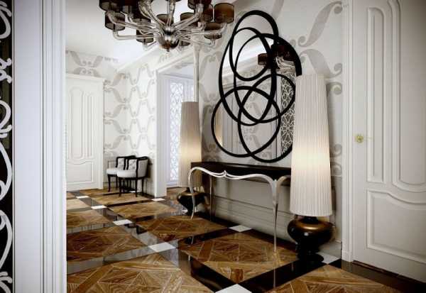 В современном арт-модерне при оформлении пола используют классический вариант, например, укладывают квадратами либо «елочкой» натуральный паркет. Интересным решением будет использование художественного паркета, который имитирует морскую волну.