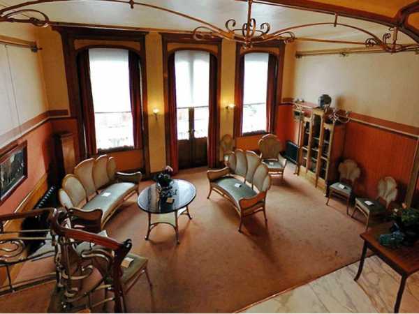 - На полу паркет с характерными для стиля ветвистыми линиями и асимметричными переплетениями.