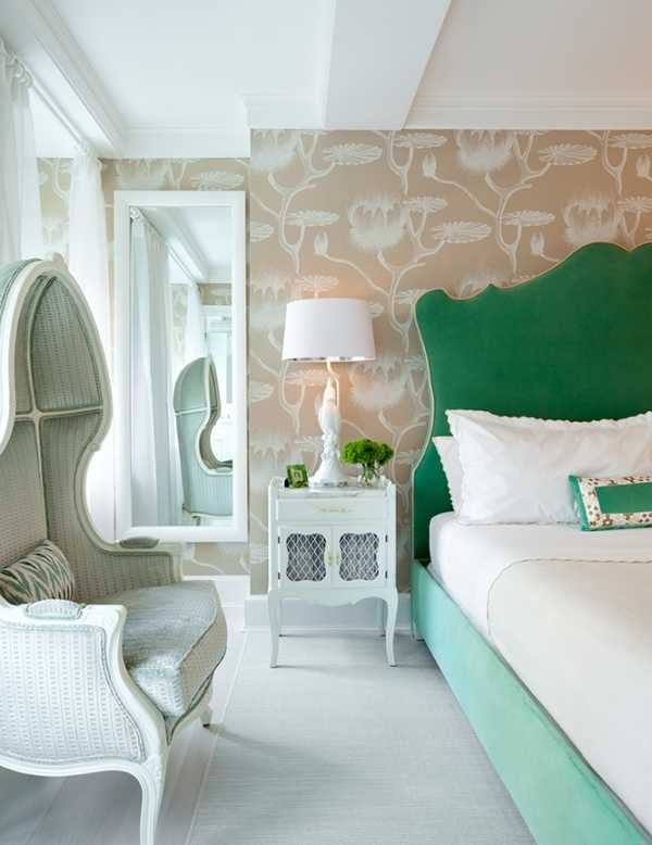 Оба цвета — природные. Они естественным образом сочетаются друг с другом и придают спальне мягкое очарование. Конечно, следует выбирать тёплые, неяркие оттенки зелёного.